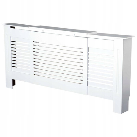 - Elegancka, regulowana osłona grzejnika w kolorze białym, wykonana z płyty MDF. Praktyczne rozwiązanie, które ukrywa kaloryfer i nadaje wnętrzu estetyczny, nowoczesny charakter.